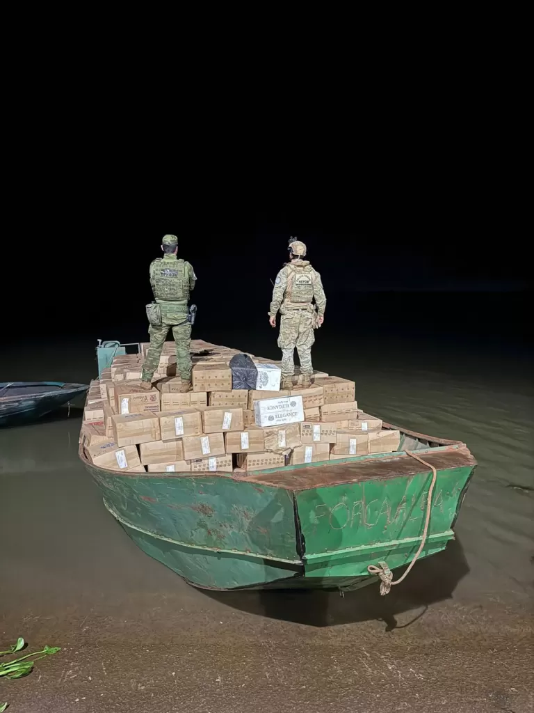 Seiscentas caixas de cigarros contrabandeados foram apreendidas no Lago de Itaipu, em Mercedes, na madrugada de quarta-feira (21).