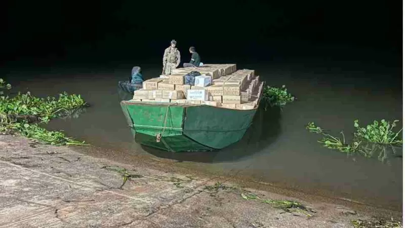 Seiscentas caixas de cigarros contrabandeados foram apreendidas no Lago de Itaipu, em Mercedes, na madrugada de quarta-feira (21).