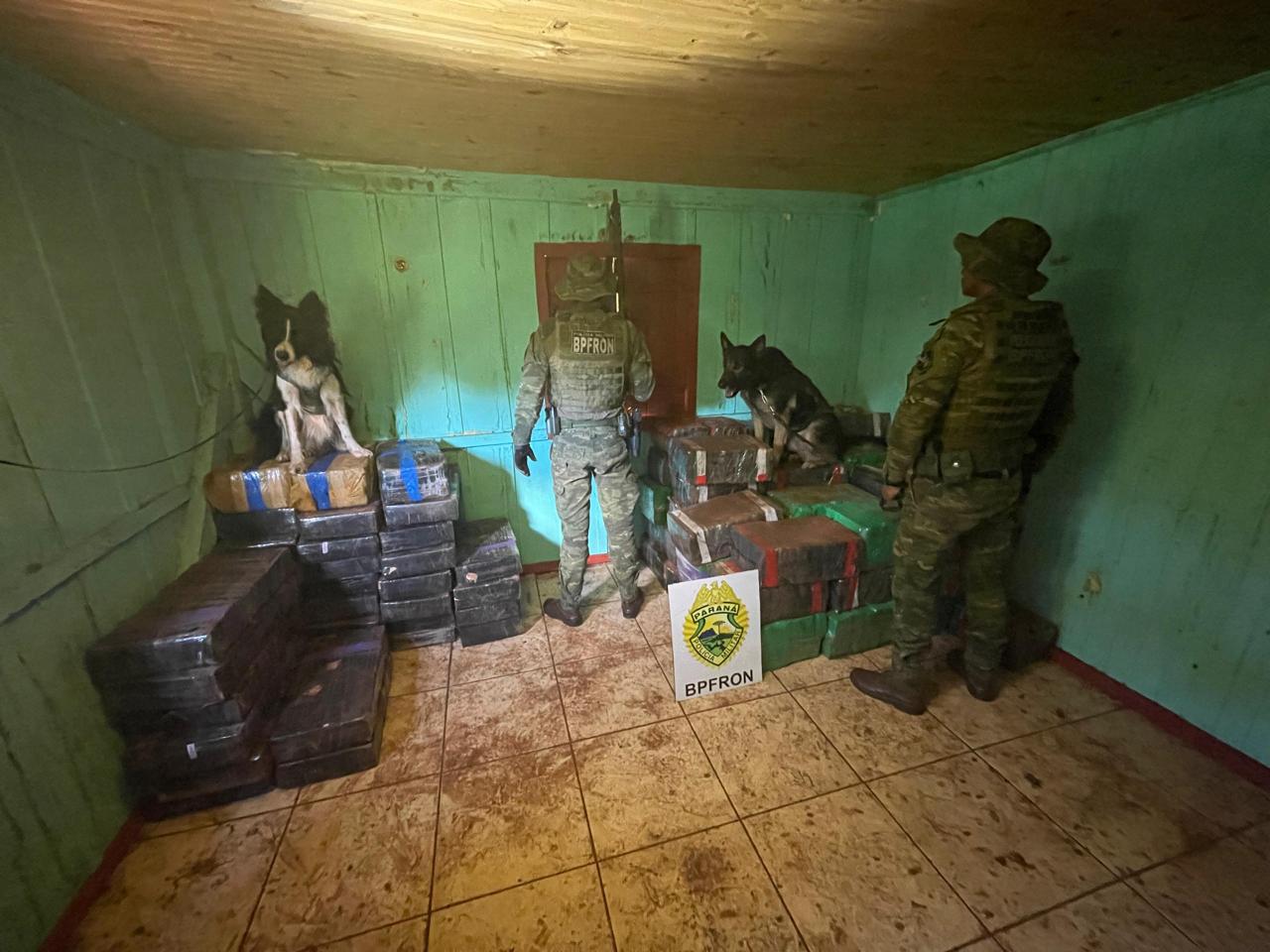Em dado momento, em uma casa abandonada, os cães de faro indicaram a presença de drogas no local. Desta forma, os policiais militares iniciaram as buscas até que foram localizados 1.699,800 quilos de maconha.
