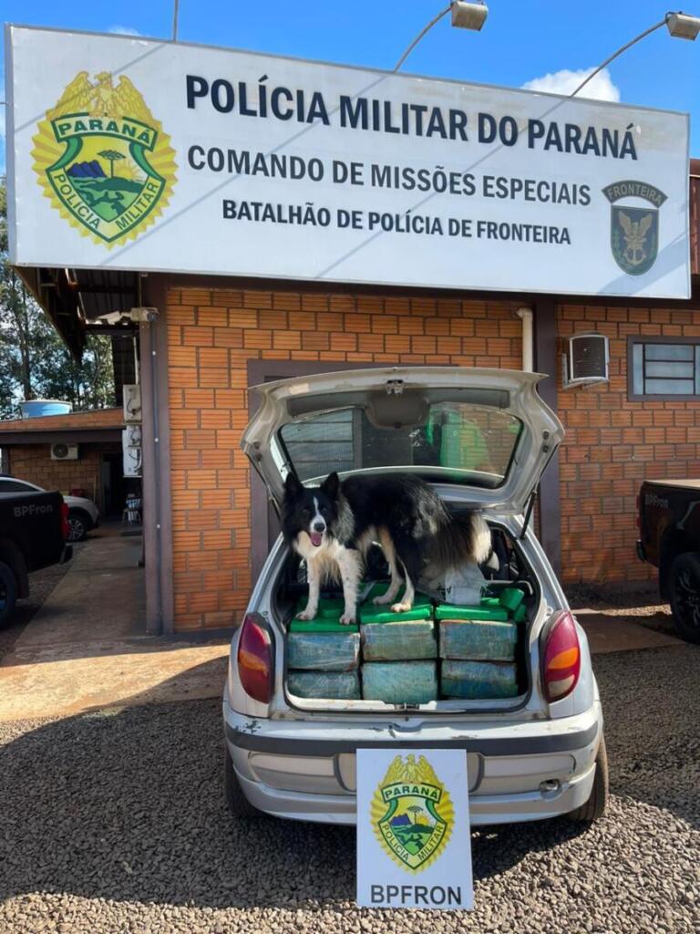 Na quarta-feira (29), no âmbito da Operação Protetor, policiais militares do pelotão de Operações com cães do Batalhão de Polícia de Fronteira (BPFron) da Polícia Militar do Paraná, durante patrulhamento na PR 467 em Marechal Cândido Rondon, deram voz de abordagem a um veículo GM/Celta com um casal de ocupantes.