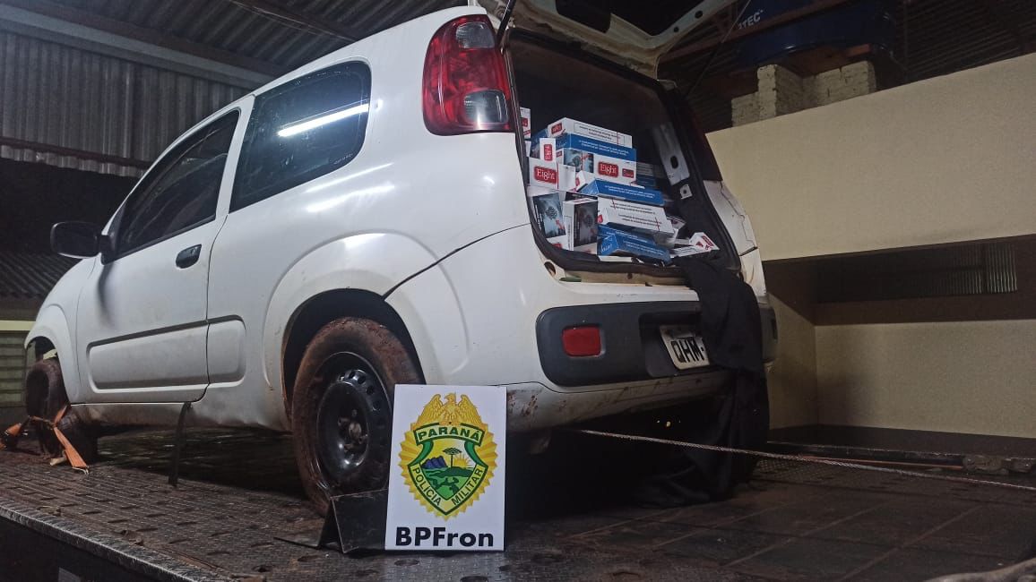 O carro estava carregado com 750 pacotes de cigarros contrabandeados.