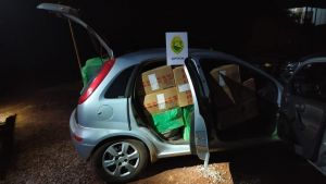 No local foram encontrados um caminhão e um veículo GM/Corsa carregados com cigarros. Em buscas nas imediações foi localizado um depósito contendo mais caixas do mesmo produto. Foram apreendidos em torno de 50 mil pacotes de cigarros contrabandeados. Buscas foram feitas no intuito de localizar os indivíduos envolvidos nas ações criminosas, porém sem êxito. Os veículos e a carga de contrabando foram apreendidos e encaminhados aos procedimentos cabíveis.