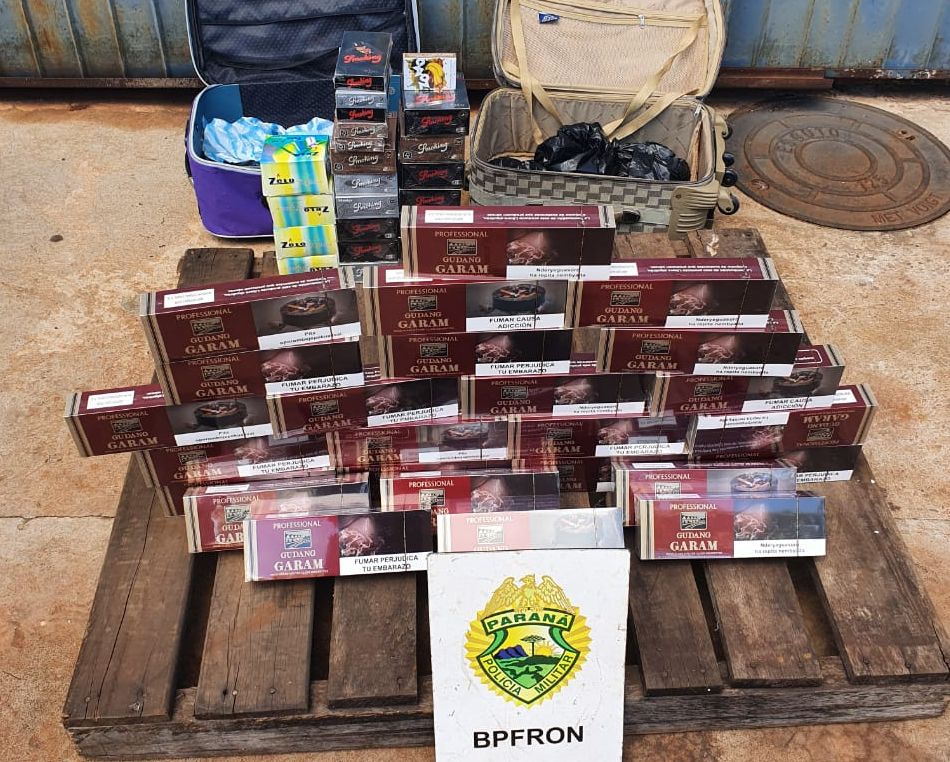 No bagageiro foram encontradas duas malas contendo pacotes de cigarros e papéis de seda contrabandeados. Um passageiro foi identificado como sendo proprietário das bagagens. Ele foi orientado quanto aos procedimentos. Já os produtos foram apreendidos e encaminhados para a Receita Federal em Foz do Iguaçu.