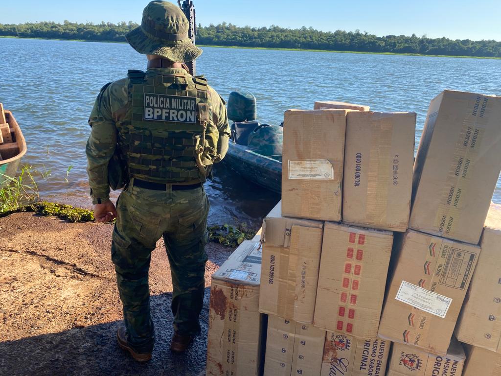 Na sexta-feira (11) policiais militares do Pelotão COBRA, do Batalhão de Polícia de Fronteira (BPFron), realizavam patrulhamento embarcado no lago de Itaipu, na cidade de Pato Bragado, durante Operação Hórus, quando avistaram uma embarcação no lago, carregada com cigarros contrabandeados. O condutor da embarcação fugiu em direção a margem brasileira, abandonou a embarcação e correu em direção a mata, não sendo encontrado. Policiais federais prestaram apoio no encaminhamento da embarcação e cigarros contrabandeados para a delegacia da Polícia Federal em Guaíra. No total foram apreendidos 3.000 pacotes de cigarros contrabandeados. Estima-se um prejuízo de R$190 mil aos criminosos somente com esta apreensão.
