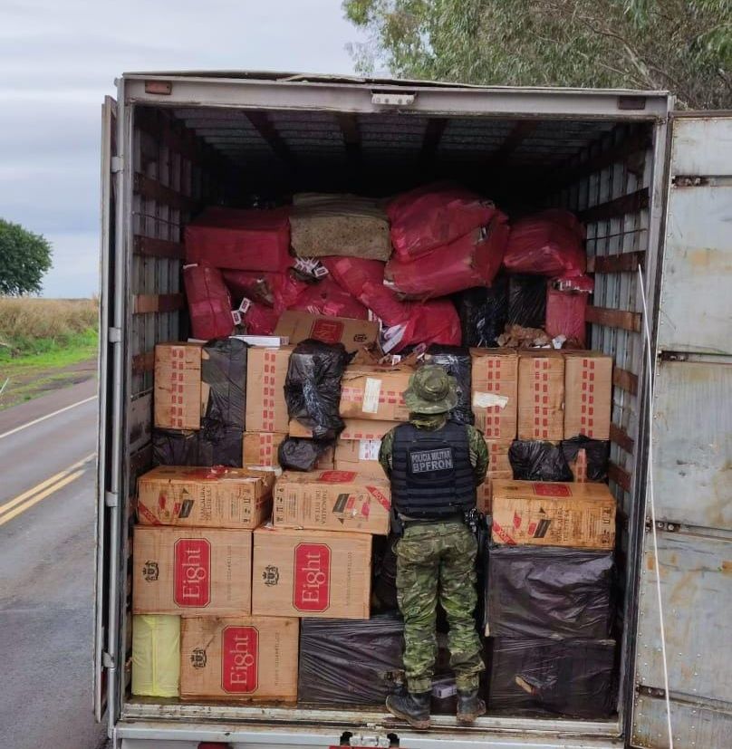 Neste domingo (10), policiais militares do Batalhão de Polícia de Fronteira (BPFron) realizavam patrulhamento em uma área rural da cidade de Francisco Alves, durante Operação Hórus, quando localizaram abandonados dois caminhões e um trator com carreta acoplada, carregados com cigarros contrabandeados, totalizando 111.150 pacotes.