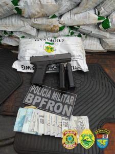 No interior de Cascavel, em continuidade às ações do BPFron e da Polícia Federal, foi visualizado um veículo Toyota/Hilux trafegando na via. Na tentativa de abordagem o veículo empreendeu fuga dando início a um acompanhamento tático. Em dado momento foi realizada abordagem ao veículo Hilux, ocupado por duas pessoas. No veículo foram encontrados cerca de 1,2 mil de agrotóxicos contrabandeados, uma pistola Glock .380 com dois carregadores e 18 munições intactas, além da quantia de R$ 12.558,00, 106 dólares americanos e dois mil guaranis. Veículo e contrabando foram encaminhados para a Receita Federal em Cascavel, os dois indivíduos, dinheiro, arma e munições foram encaminhados para a Polícia Federal também na cidade de Cascavelpara os procedimentos cabíveis.