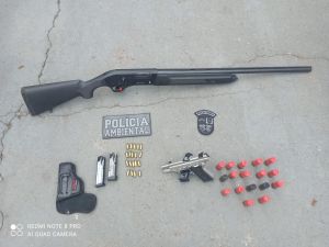 Na manhã desta terça-feira (26), policiais militares do Batalhão de Polícia de Fronteira (BPFron) receberam uma denúncia informando que em determinado local da cidade de Brasilândia do Sul haveria agrotóxicos contrabandeados. No local indicado foram encontradas várias embalagens vazias de veneno em uma residência. Foi acionado o Batalhão de Polícia Ambiental de Umuarama para análise da situação, sendo que durante as diligências na residência foram encontradas uma pistola calibre 380 com 19 munições e registro, além de uma espingarda calibre 12 com 17 munições, a qual não havia registro.