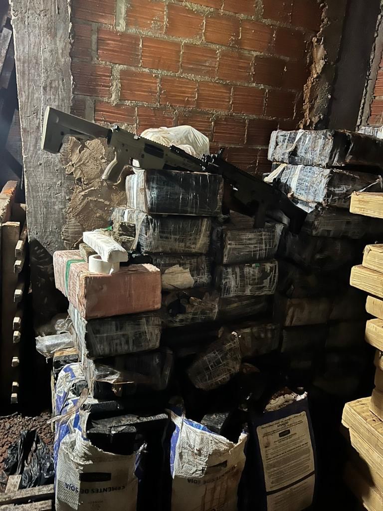 Em uma área de chiqueiro, um bunker no subsolo, e no seu interior foi encontrada uma grande quantidade de entorpecentes análogo a maconha, que após pesagem totalizou aproximadamente 7,2 toneladas. Foram localizados ainda 2 Fuzis calibre .762, 01 Fuzil calibre .556, aproximadamente 257 munições calibre .762, 400 munições calibre .556 e 44 munições calibre 12.