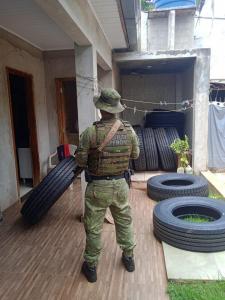 Neste sábado (29), policiais militares do Batalhão de Polícia de Fronteira (BPFron) patrulhavam a cidade de Foz do Iguaçu, quando abordaram uma residência. No local, foram apreendidos 54 pneus de caminhão e dois de motocicleta, todos contrabandeados.