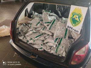Ao perceber a aproximação policial o condutor abandonou o veículo e fugiu em meio a uma região de mata próxima, não sendo localizado. O veículo estava carregado com 150 quilos de agrotóxicos contrabandeados. Veículo e contrabando foram apreendidos e encaminhados aos procedimentos cabíveis.