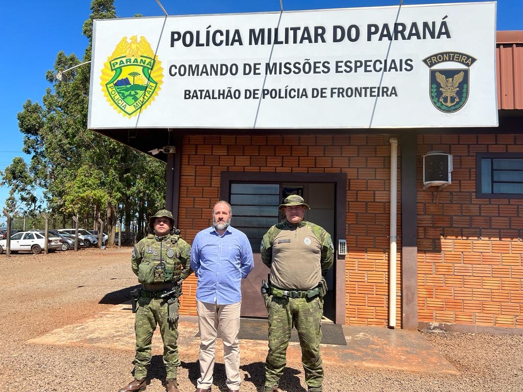 Na quarta-feira (21), representante da empresa Syngenta, Alessandro Bianco, visitou a sede do Batalhão de Polícia de Fronteira (BPFron), em Marechal Cândido Rondon, ocasião em que conheceu o trabalho realizado pela unidade no combate aos crimes transfronteiriços, como o contrabando de agrotóxicos, tráfico de armas, drogas e entrada de outros produtos ilegais.