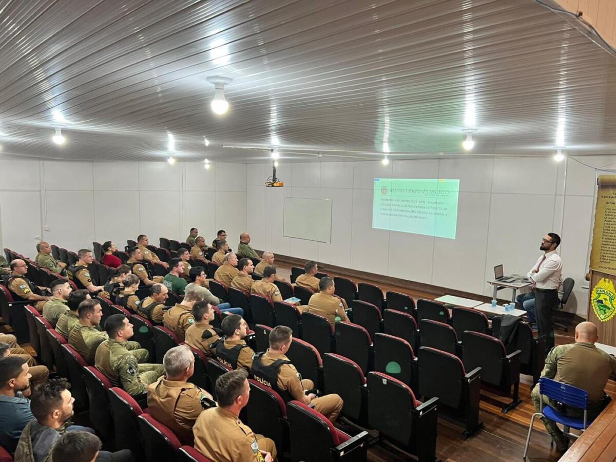 Na sexta-feira (7), policiais militares do Batalhão de Polícia de Fronteira (BPFron) da Polícia Militar do Paraná receberam o promotor de Justiça da Comarca de Marechal Cândido Rondon Caio di Rienzo para uma palestra direcionada a todo o efetivo.