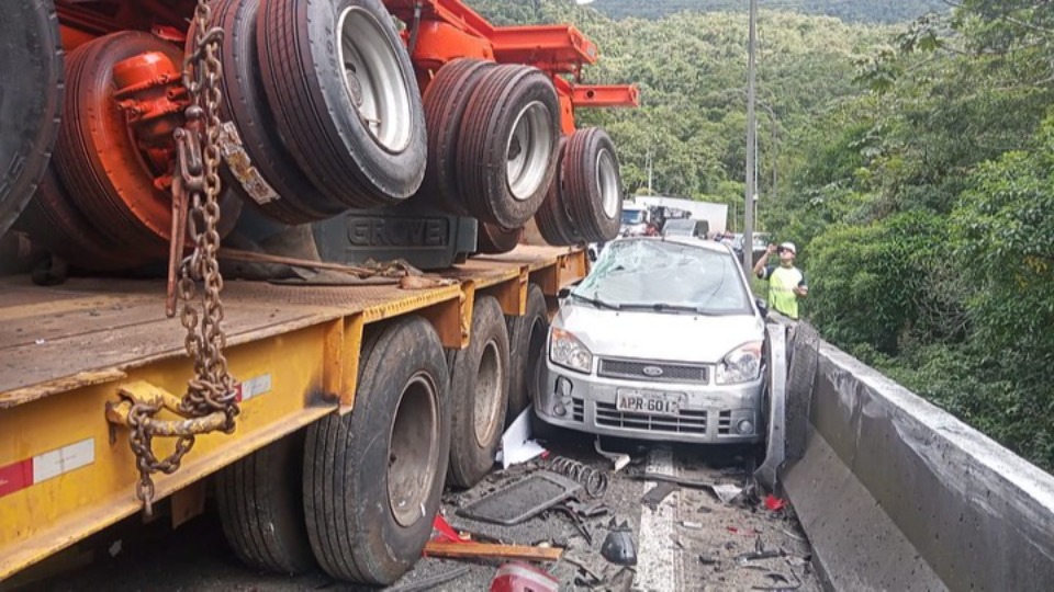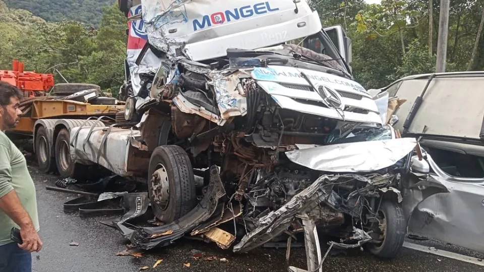 Equipes da concessionária Arteris Litoral Sul e do Corpo de Bombeiros atuam no local, mas ainda não há informações sobre as vítimas.
