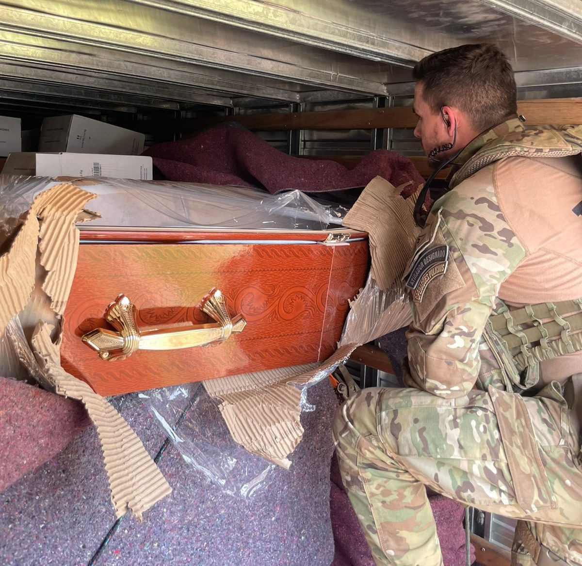 Ao revistarem os caixões, os policiais encontraram diversas caixas de vinhos de origem argentina, produto que estava sendo transportado sem a documentação fiscal, caracterizando crime de descaminho. O total de vinhos apreendidos será contabilizado pela Receita Federal, que assumirá o caso.