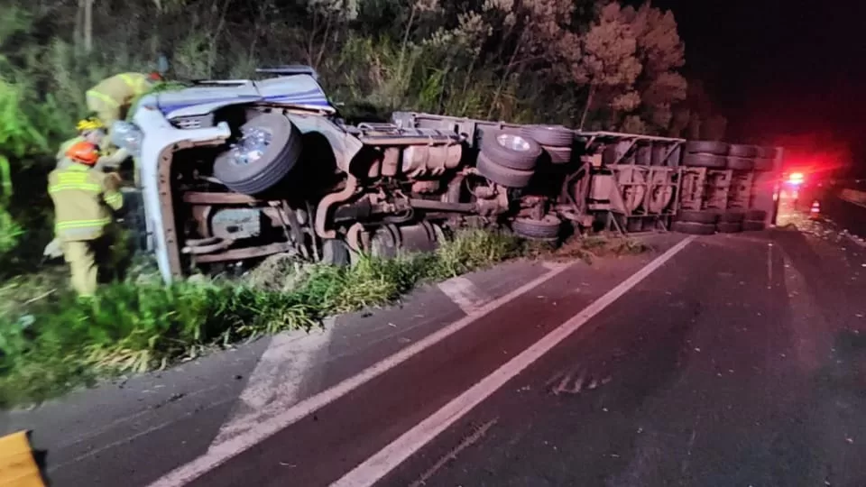 Motorista de 43 anos morreu após caminhão tombar no km 309, da BR-376, em Ortigueira, no Centro Oriental Paranaense, no início da noite de segunda-feira (5).
