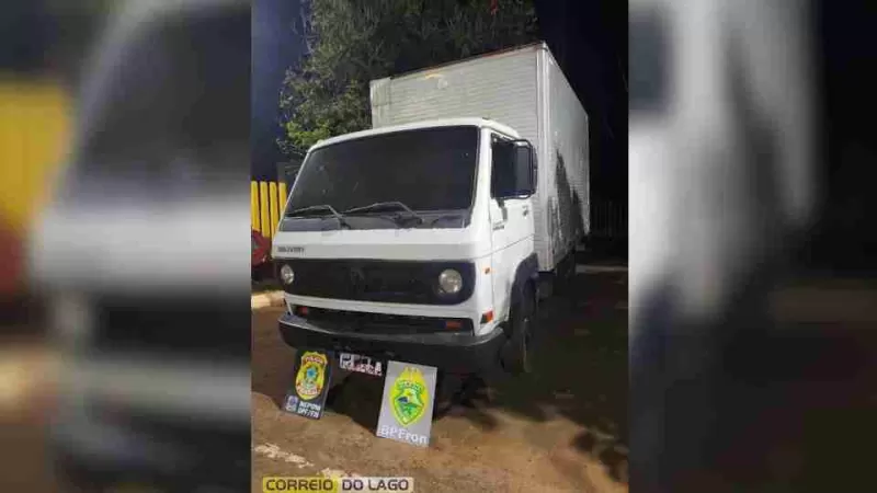 Após checagem, os policiais confirmaram que o caminhão tinha registro de roubo no estado de São Paulo.