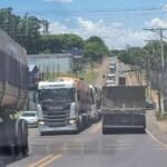 Um caminhão tombou no km 179, na BR-163 na tarde desta terça-feira (25), próximo ao posto da Polícia Rodoviária Federal de Lindoeste.