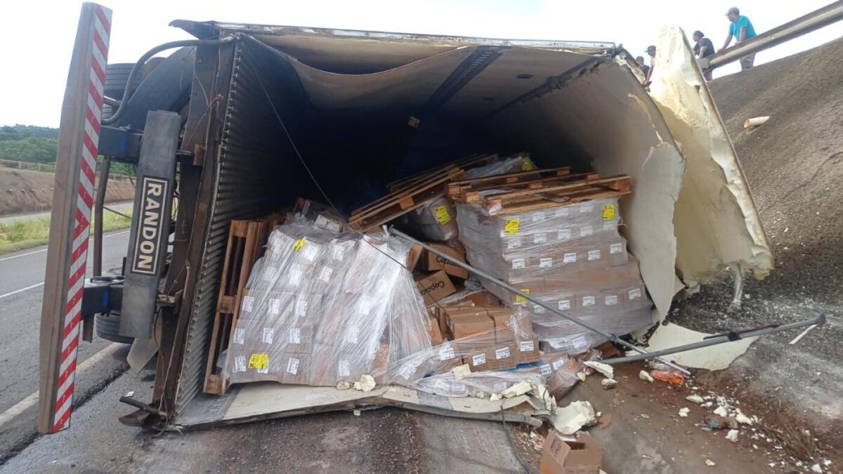 A ocorrência envolveu uma carreta frigorífico que transportava frango congelado e trafegava de Quatro Pontes a Marechal Cândido Rondon. Não há informações sobre as circunstâncias do acidente. Segundo a PRF, não há vítimas.