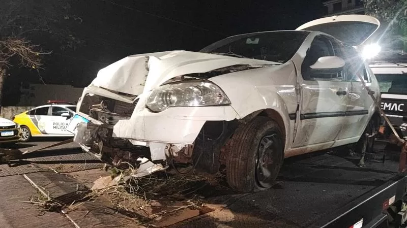 Ao entrar na área urbana de Marechal Rondon, o motorista abandonou o carro ainda em movimento e conseguiu escapar. O Palio atingiu uma árvore e ficou com diversos danos.