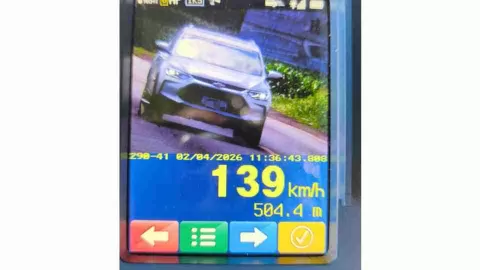 Ao observar um GM Corsa em circulação, os agentes perceberam que a identificação dianteira não seguia o padrão exigido. Durante a verificação, foi constatado que a placa era, na prática, um adesivo colado sobre uma chapa metálica, sem o alto-relevo obrigatório.