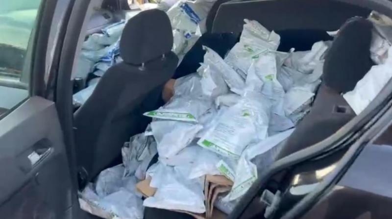 O condutor parou no estacionamento de uma empresa às margens da rodovia, abandonou o veículo e adentrou em uma área de mata, não sendo possível localizá-lo. O veículo estava carregado com 225 quilos de agrotóxicos de origem estrangeira.