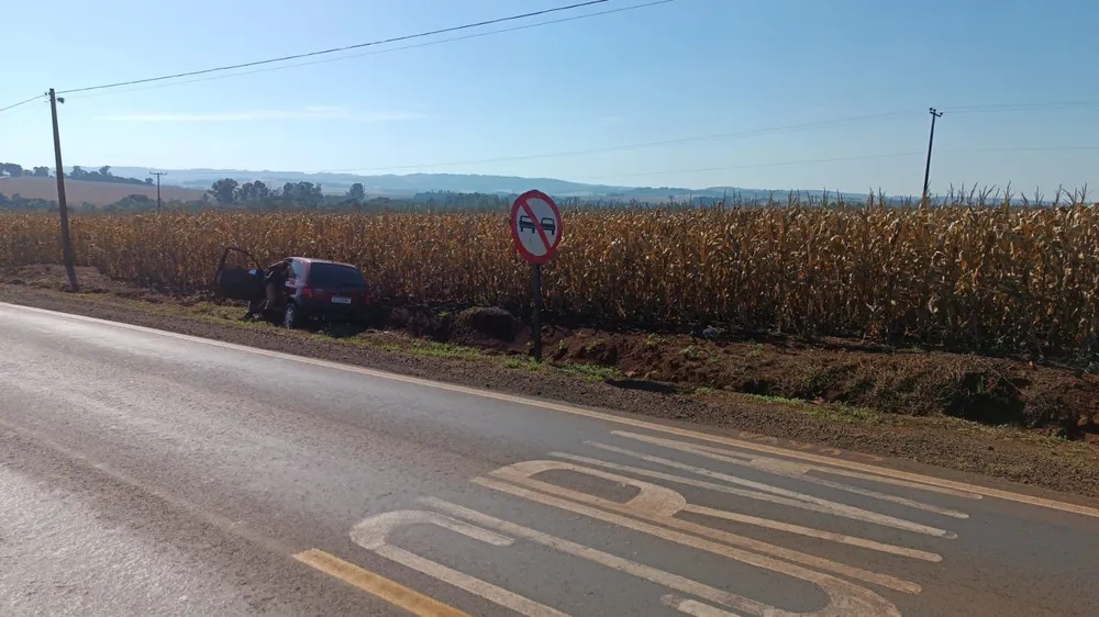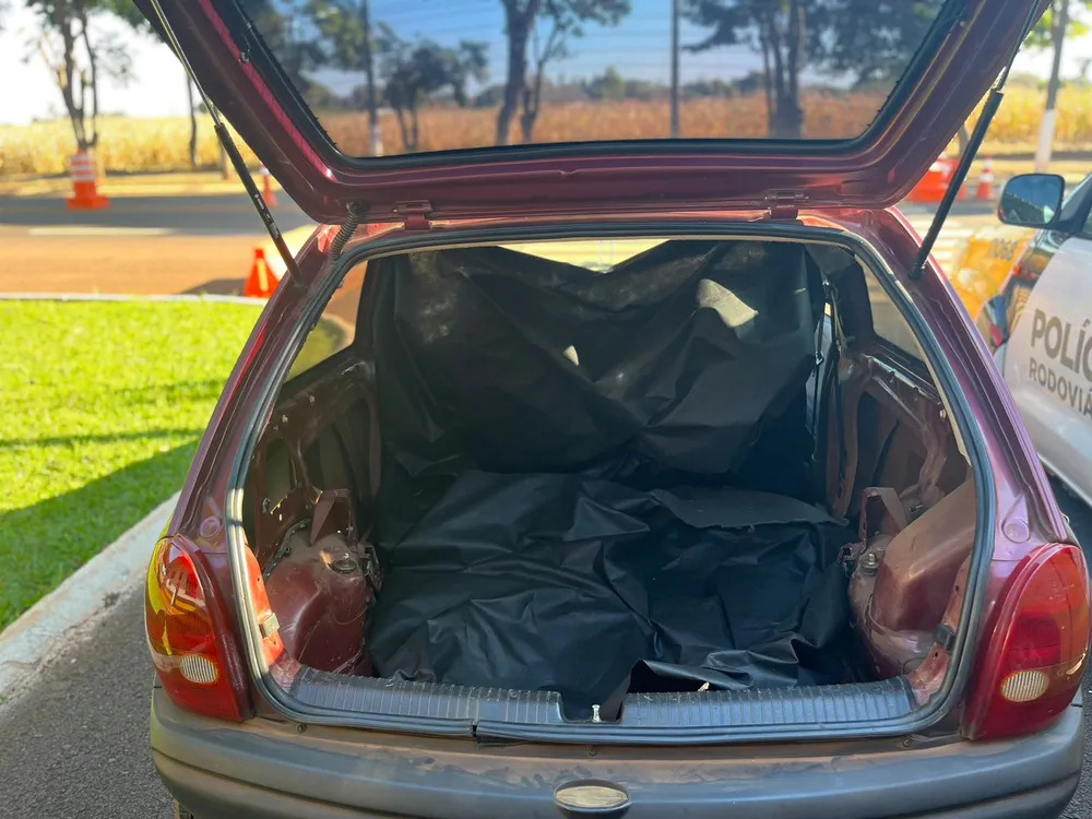 Em um dado momento, o condutor parou o carro às margens da rodovia e fugiu a pé em direção à plantação de milho. Os agentes tentaram alcançá-lo, mas não foi possível.