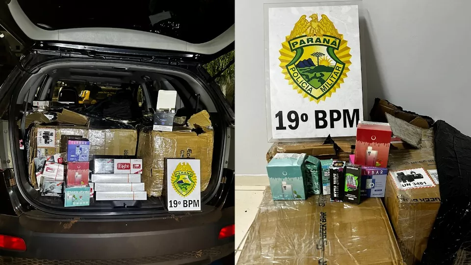 No sorento foram localizado mil pacotes de cigarros de origem paraguaia, avaliados em R$ 50 mil, quatro volumes de cigarros eletrônicos e essências de marcas diversas avaliadas em aproximadamente R$ 120 mil.
