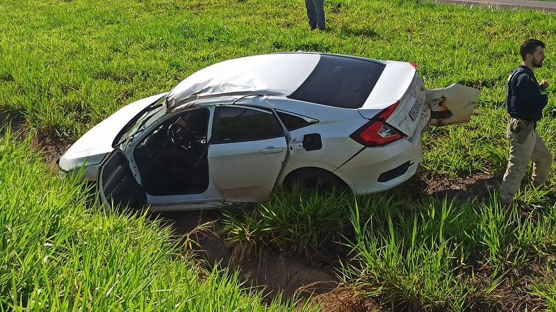 Um Fiat Siena e um Honda Civic trafegavam no sentido a Marechal Rondon quando houve a colisão lateral, em seguida o Honda capotou parando na posição normal no canteiro central da rodovia, o condutor do Civic não teve o nome nem a idade revelada e foi socorrido pelo Siate e encaminhado para atendimento hospitalar em Toledo com ferimentos considerados leves.