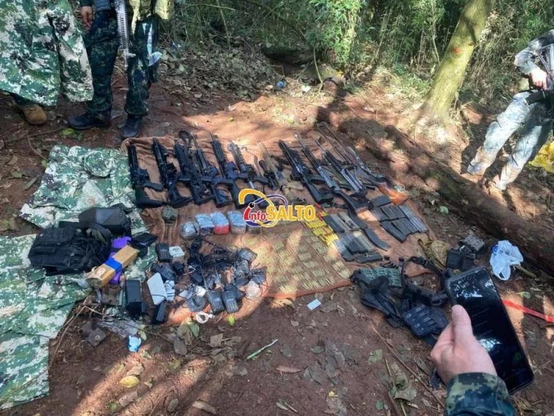 No local, as forças de segurança paraguaia apreenderam um arsenal de guerra: 13 fuzis 5.56 e 7.62 (alguns de origem militar), duas espingardas .12, 734 munições, carregadores, fardas e equipamentos de comunicação, visores noturnos e outros elementos táticos.