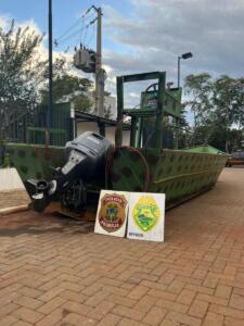 Policiais militares do Batalhão de Polícia de Fronteira (BPFron), em ação integrada com policiais federais, patrulhavam as proximidades do Lago de Itaipu, distrito de Porto Mendes, em Marechal Cândido Rondon, durante Operação Hórus, no domingo (19), quando avistaram uma embarcação atracando em um porto.