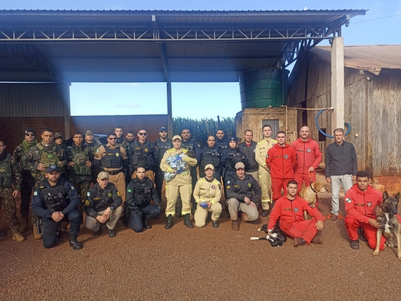 Juntamente com a PM, equipes da Guarda Municipal, Corpo de Bombeiros, Exército Brasileiro e Batalhão de Polícia de Fronteira (BPPFron) iniciaram as buscas nas áreas de mata e lavoura durante todo o dia e noite fria. Cães farejadores e drones também foram utilizados nas buscas.