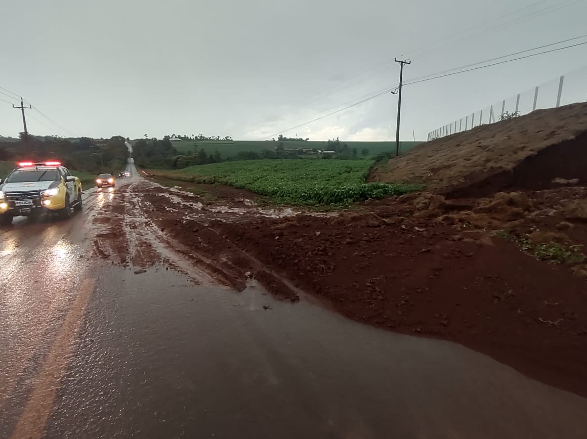 A chuva expressiva registrada na tarde de domingo (10) provocou a queda de um barranco sobre a PR-589, no trajeto compreendido entre o distrito toledano de Novo Sarandi e o município de Nova Santa Rosa, culminando em um acidente de trânsito.