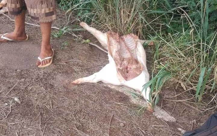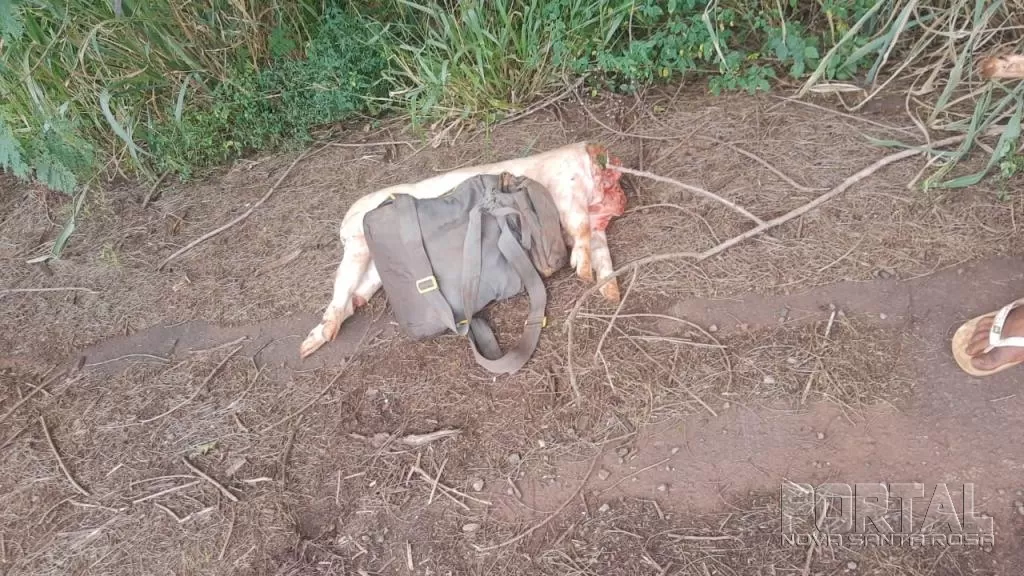 A Guarda Municipal foi acionada após a informação de que pessoas estariam transportando animais mortos. No local, três indivíduos foram abordados enquanto levavam dois leitões sem cabeça e sem a barrigada.