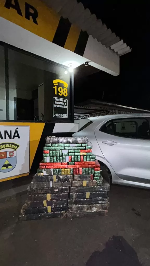 No interior do Fiat Argo foram encontrados 231,6 quilos de maconha. O automóvel e a droga foram apreendidos e encaminhados à Delegacia de Cianorte.
