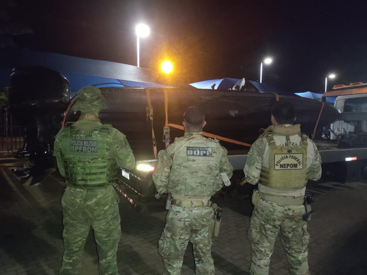 A embarcação e a droga foram encaminhadas para a Delegacia da Polícia Federal em Guaíra.