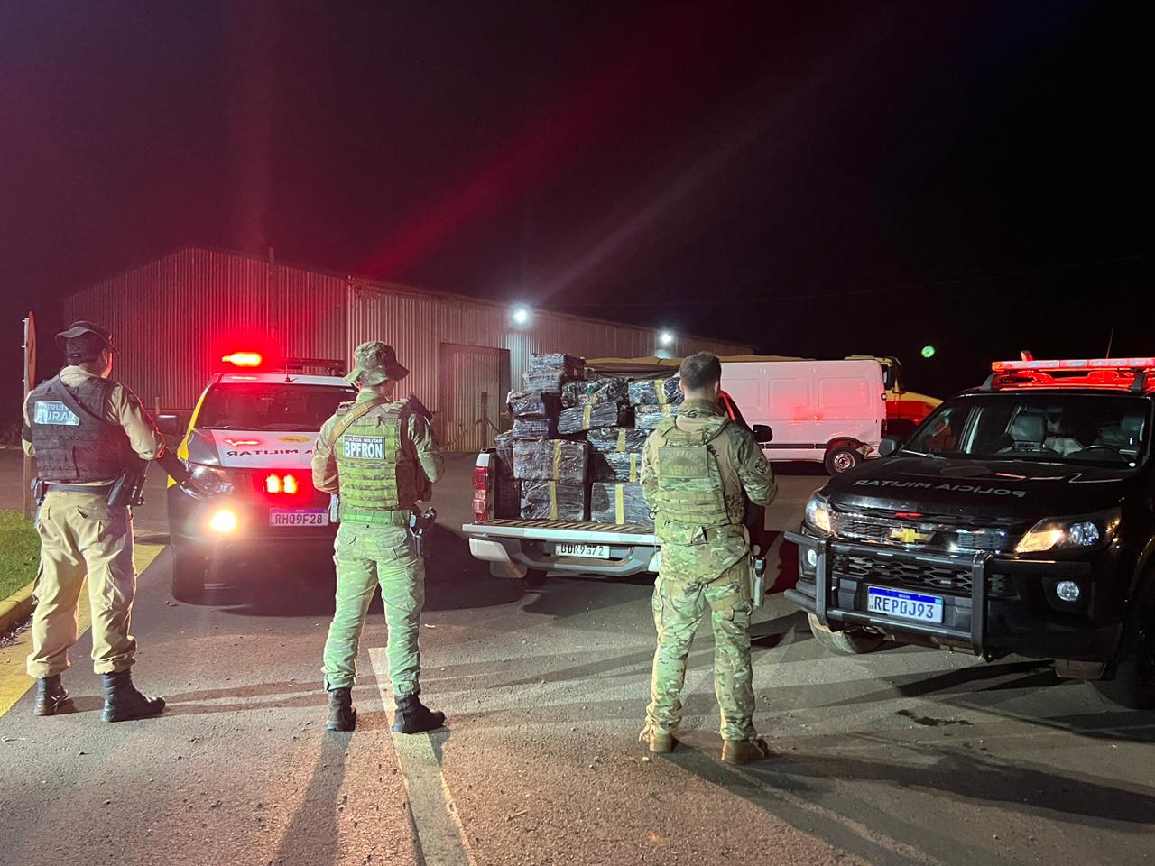 Por volta das 17 horas de ontem (16), durante cumprimento da Operação Hórus, policiais militares do Batalhão de Polícia de Fronteira (BPFron), da Patrulha Rural do 19º Batalhão de Polícia Militar (PM) e policiais federais do Nepom de Guaíra, durante diligências em portos clandestinos no distrito de Bom Jardim, interior de Marechal Cândido Rondon, lograram êxito em localizar em meio à mata ciliar 46 fardos de maconha.