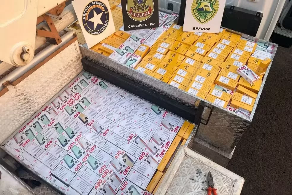 Durante a vistoria no veículo, os policiais encontraram um compartimento adaptado que não era compatível com o modelo do caminhão. Dentro dele, estavam os celulares avaliados em mais de R$ 1,7 milhão.