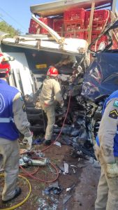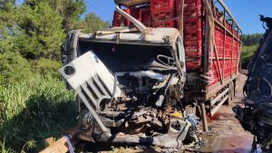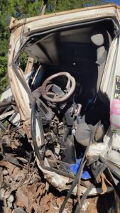 Um violento acidente registrado por volta das 13h30 desta quarta-feira (31) resultou no motorista de um caminhão gravemente ferido. O acidente do tipo complexo envolveu quatro caminhões e um Volkswagen/Gol, no quilômetro 38 da PR-585, na saída de Toledo para São Pedro do Iguaçu.