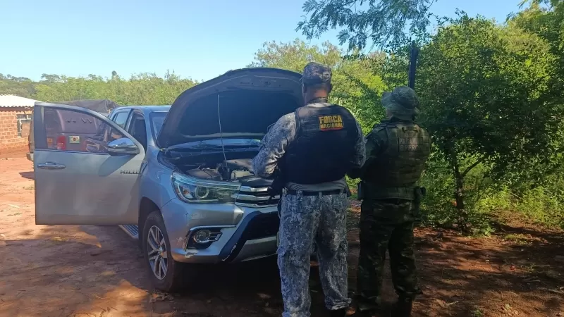No local, foi encontrada uma Toyota Hilux prata. Inicialmente, não havia alerta de irregularidade nos registros policiais. Após checagem mais aprofundada, os agentes conseguiram localizar o dono do veículo, que informou o furto ocorrido em Cascavel no dia 5 e relatou que ainda não havia formalizado o boletim de ocorrência.