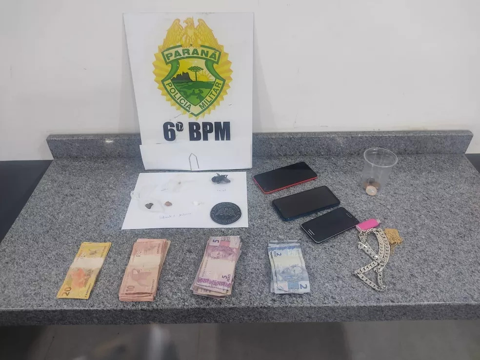A prisão foi no domingo (25). Conforme a polícia, uma ligação anônima pelo 181, informou que um homem estava na Avenida Brasil vendendo entorpecentes em um ponto de ônibus com uma criança no colo.