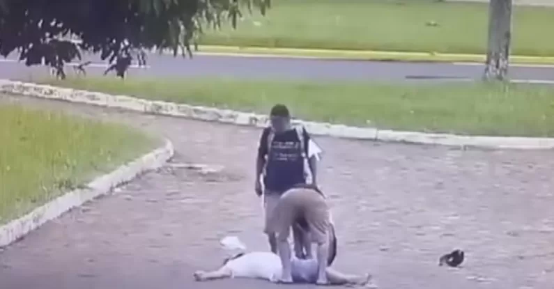 Nas imagens, é possível ver que o homem tentou conversar com a dupla. Após, ele foi agredido com socos e caiu no chão, desacordado. Na sequência, os suspeitos tiraram objetos dos bolsos da vítima e saíram do local com o celular dela.