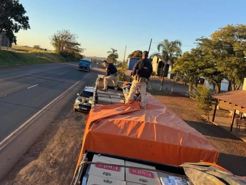 O veículo foi abordado pela PRF no km 303 da BR-163, perímetro urbano de Mercedes. Ao vistoriar a carga, os policiais rodoviários federais localizaram 1200 caixas de cigarros de origem estrangeira.