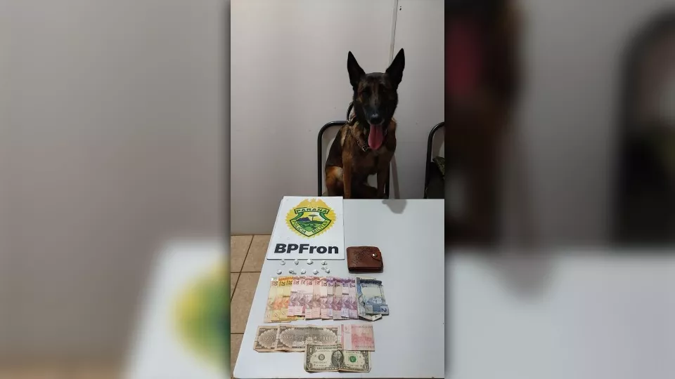 Policiais militares do Pelotão de Operações com Cães do BPFRON, durante a Operação Hórus, abordaram dois indivíduos e localizaram com um deles 6 gramas de substância análoga à cocaína.