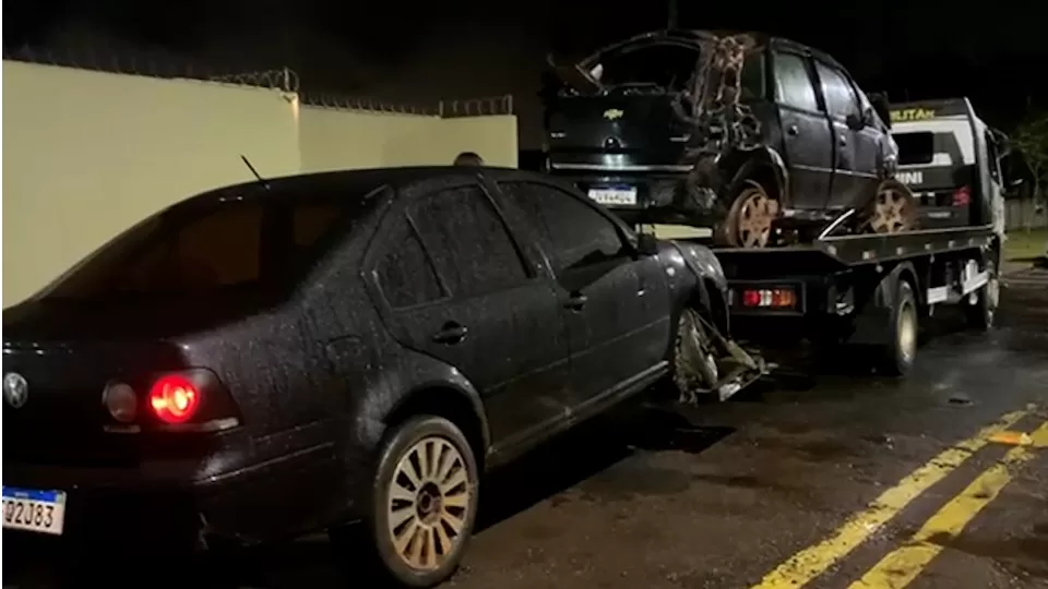 A equipe da Patrulha Rural da Polícia Militar identificou dois veículos em comboio, sendo um Meriva com registro de furto no Estado de São Paulo e um Bora. Foi dada ordem de abordagem, mas os motoristas não obedeceram e fugiram.