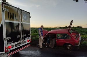 Um homem de 30 anos que conduzia um VW/Brasília, de cor vermelha, resultou com morte instantânea no violento acidente registrado por volta das 05 horas desta quinta-feira (14), no quilômetro 380 da PR-317.