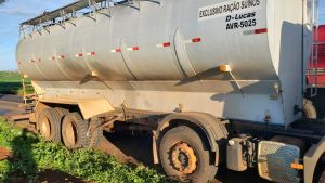 O motorista do caminhão saiu ileso do acidente. O caminhão transportava ração.