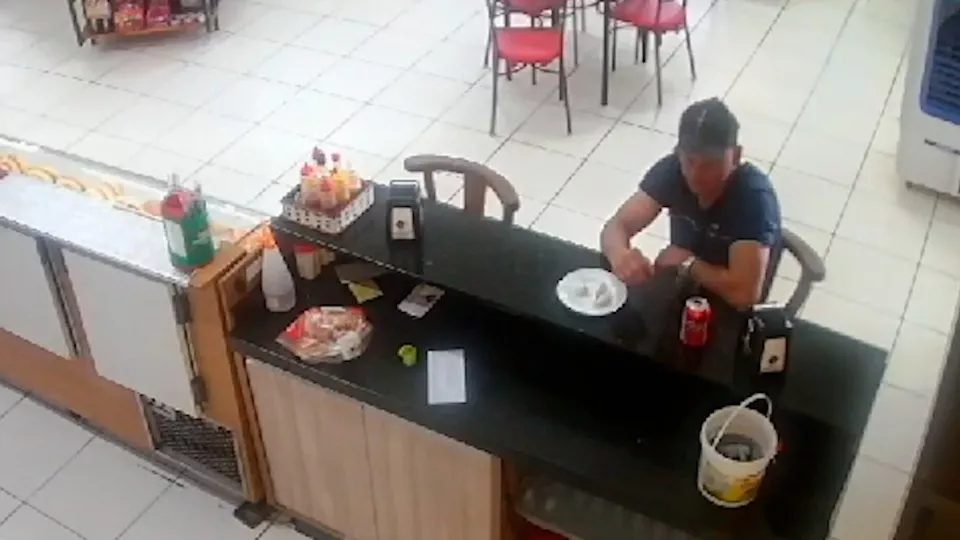 Na imagem da câmera de monitoramento é possível ver o homem sentado à bancada do estabelecimento tomando refrigerante e comendo salgado. As forças de segurança de Santa Catarina e Paraná, em trabalho conjunto, conseguiram identificar que ele estava se deslocando pela BR-277, em Guaraniaçu.