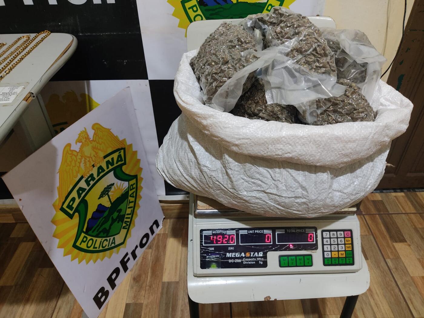 Com um dos passageiros foi encontrado 4,9 quilos de substância análoga a maconha do tipo morruga, R$ 987 e algumas joias de origem desconhecida. De acordo com o BPFron, o passageiro tinha 43 anos.