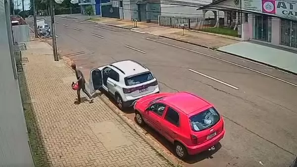Pouco depois, ao sair do local, a vítima percebeu que o veículo ainda estava no estacionamento. Imagens de câmeras de segurança mostraram que o suspeito entrou no carro, ligou o motor, mas bateu em um veículo estacionado atrás e não conseguiu sair com o automóvel, possivelmente, segundo a polícia, por não saber conduzir um carro automático.