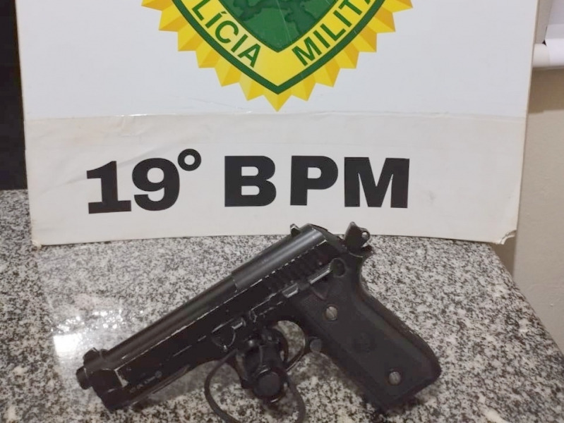 Durante a abordagem, os ocupantes foram identificados e revistados, sem que nenhum material ilícito fosse encontrado com eles. No entanto, ao inspecionar o veículo, a equipe encontrou no porta-luvas um simulacro de arma de fogo preta, sem a ponteira laranja, que imitava perfeitamente o peso e a aparência de uma arma real.